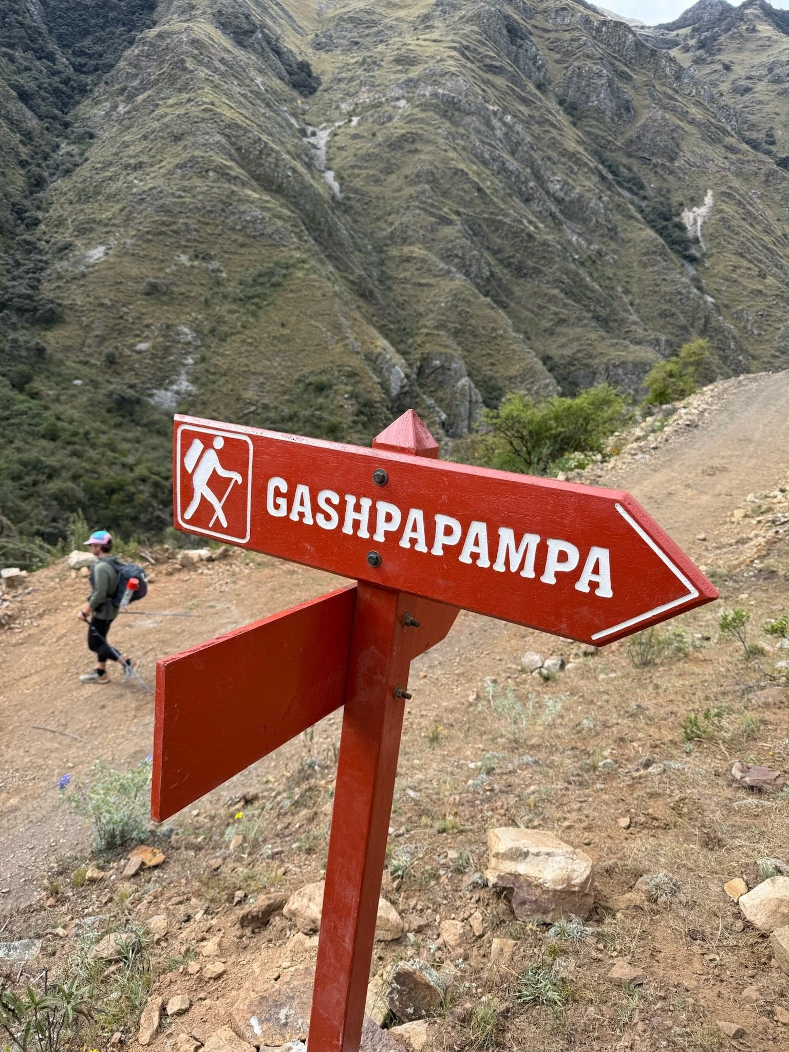 My phone vibrated and rattled the small table it rested on. I rose and blinked a few times and thought to myself “It’s now or never and we have to go”. We got things together and breakfast was served in our room - two small bread rolls with egg inside. We devour them, prepared final packing and dropped out the bottom door. The smell of the air was cool and crisp this morning with a lingering alpenglow setting off the western peaks watching over us. We started hiking up the road and out of town. No running here, we needed a warmup. The minutes turns to hours and we began weaving our way up the road through Pocpa, mining villages, and the rural person or two eking a living out of the high countryside. Landscape began to turn to drastic, large granite peaks towering above us and then behind us. Eventually, 9 miles later we made it to the assumed start for most trekkers and tourist being shuffled in by touristco minivan kicking up dust all around the place, Cuartelwain. Not much more than the end of the road, some grass, and a brief and confusing trail start is the kickoff point where groups were assembling with burros being lashed with all the accoutrements trekkers required. We noticed in the guidebook that I acquired some years ago to watch out for nefarious payment collectors who asked us to pay the same tariff amount we paid in Pocpa, good for the entire distance to Cuartelwain. We politely showed him our paid ticket, and continued onwards.